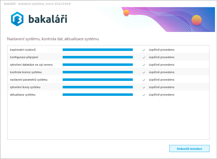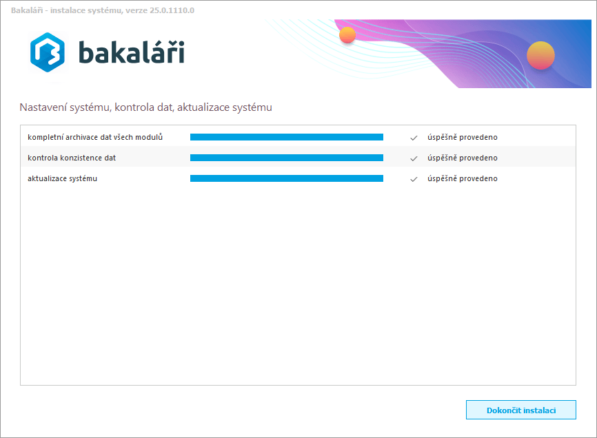 Po provedení aktualizace systému instalaci dokončíme pomocí tlačítka Dokončit instalaci.