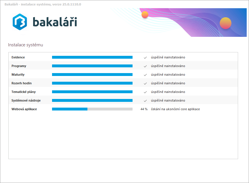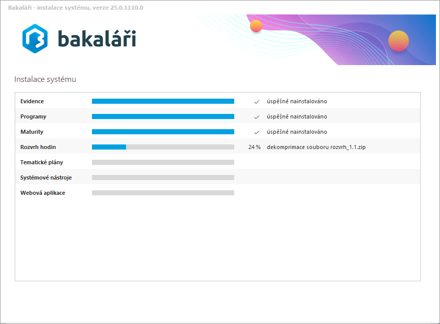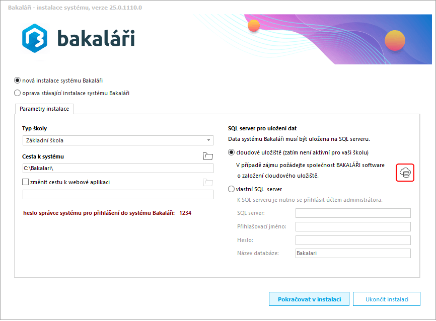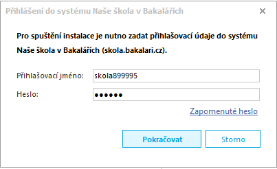 Zvolíme tlačítko Instalace systému Bakaláři.