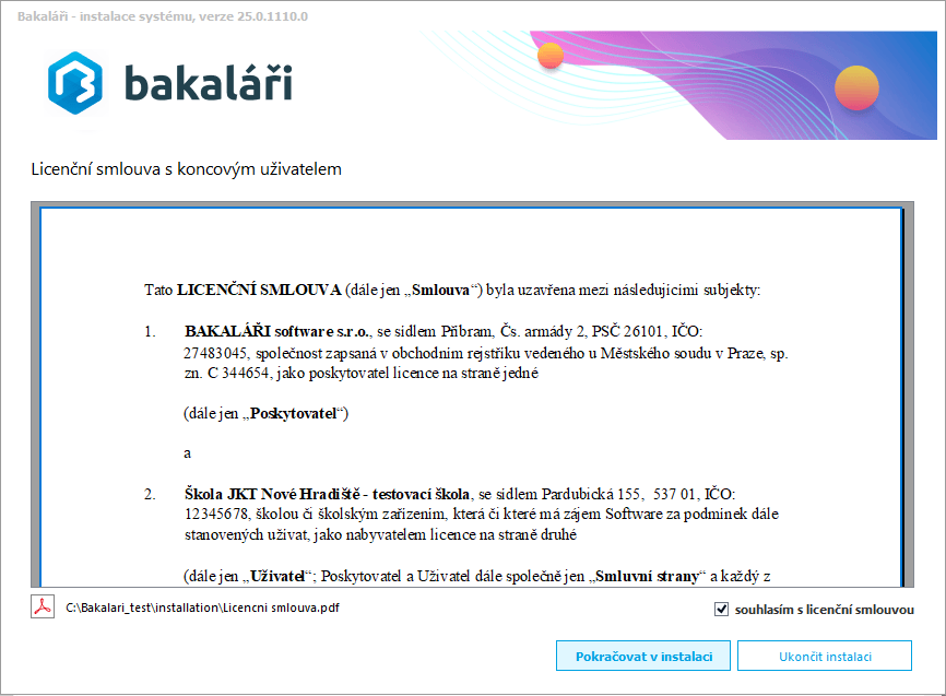 Dále jsme vyzváni k souhlasu s licenční smlouvou.