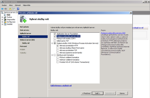 Vybereme služby Webového serveru (IIS) a u Služby rolí je nutné zvolit Podpora webového serveru (IIS).