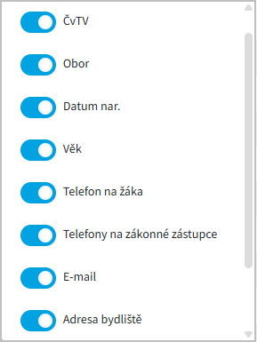 můžeme zvolit, které sloupce chceme v přehledu žáků vidět.
