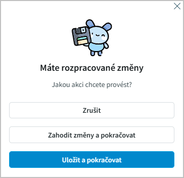 Informace je třeba Uložit. Pokud opustíme záložku bez uložení dat, jsme na to upozorněni.