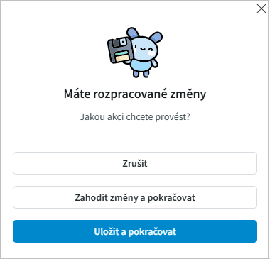 Pokud záložku opouštíme bez uložení, jsme dotázáni, zda provedené změny uložit či zahodit, nebo akci zrušit.