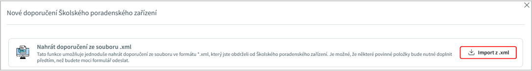 Doporučení je možné nahrát z XML, pokud ho máme k dispozici,