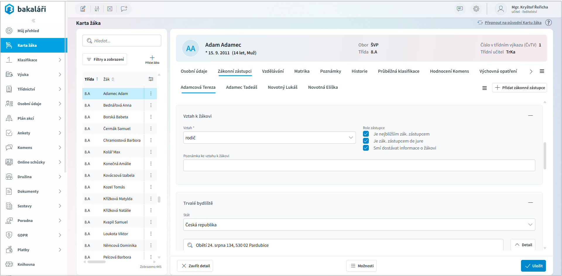 << Klikni pro zobrazení obsahu >> Navigace: Webová aplikace > Karta žáka - nová > Zákonní zástupci |