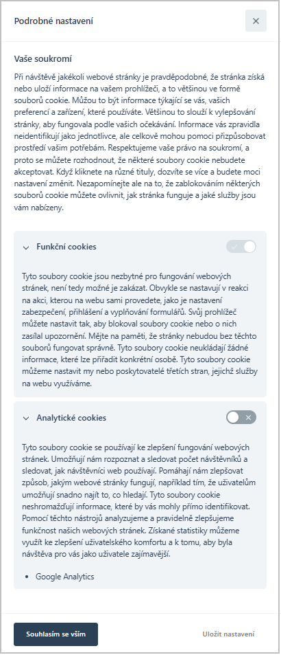 Nastavení je možné kdykoli změnit prostřednictvím tlačítka Změnit nastavení využívání cookies.