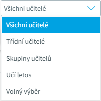 Pokud zvolíme Skupiny učitelů, jedná se o skupiny vytvořené v desktopové Evidenci na Kartě učitele - Definice množin učitelů.