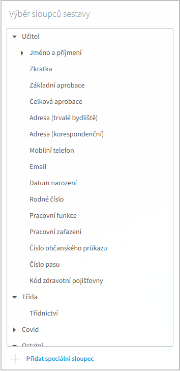 Nejprve vybereme, kterých učitelů se má vytvořená sestava týkat.
