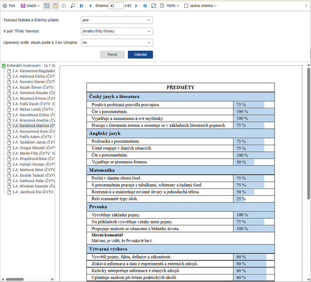 << Klikni pro zobrazení obsahu >> Navigace: Webová aplikace > Sestavy > Vysvědčení |